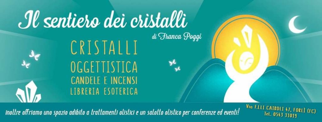 Collaborazioni. Savio placidi : L’Anima dei Cristalli, negozio via Milano 2/b a San Lazzaro di Savena tel +393356772267 Franca Poggi Via Fratelli Cairoli, 47, 47121 Forlì FC tel +393394570000 Home Condividi: Condividi su X (Si apre in una nuova finestra) X Condividi su Facebook (Si apre in una nuova finestra) Facebook Mi piace Caricamento...