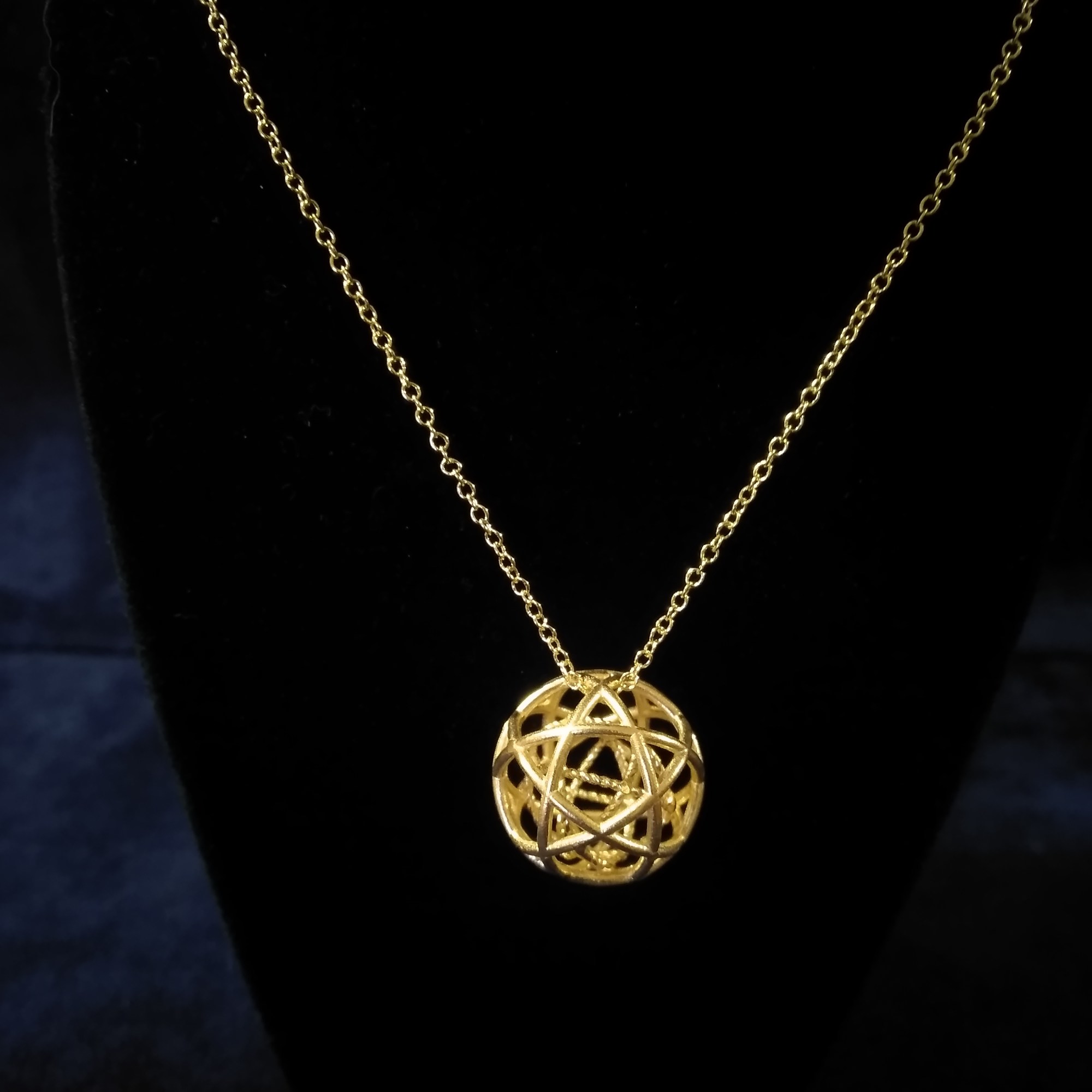 Pentasfera 2 cm con Genesa 1,5 cm di diametro argento placcato oro a spessore, valore 135,00 euro catenina esclusa