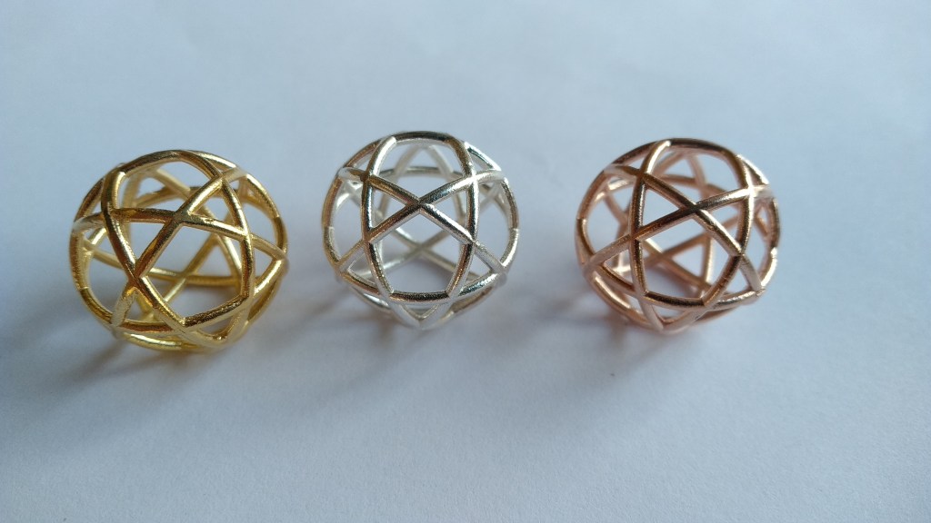 Pentasfera 2 cm di diametro argento placcato oro o oro rosa, catenina esclusa