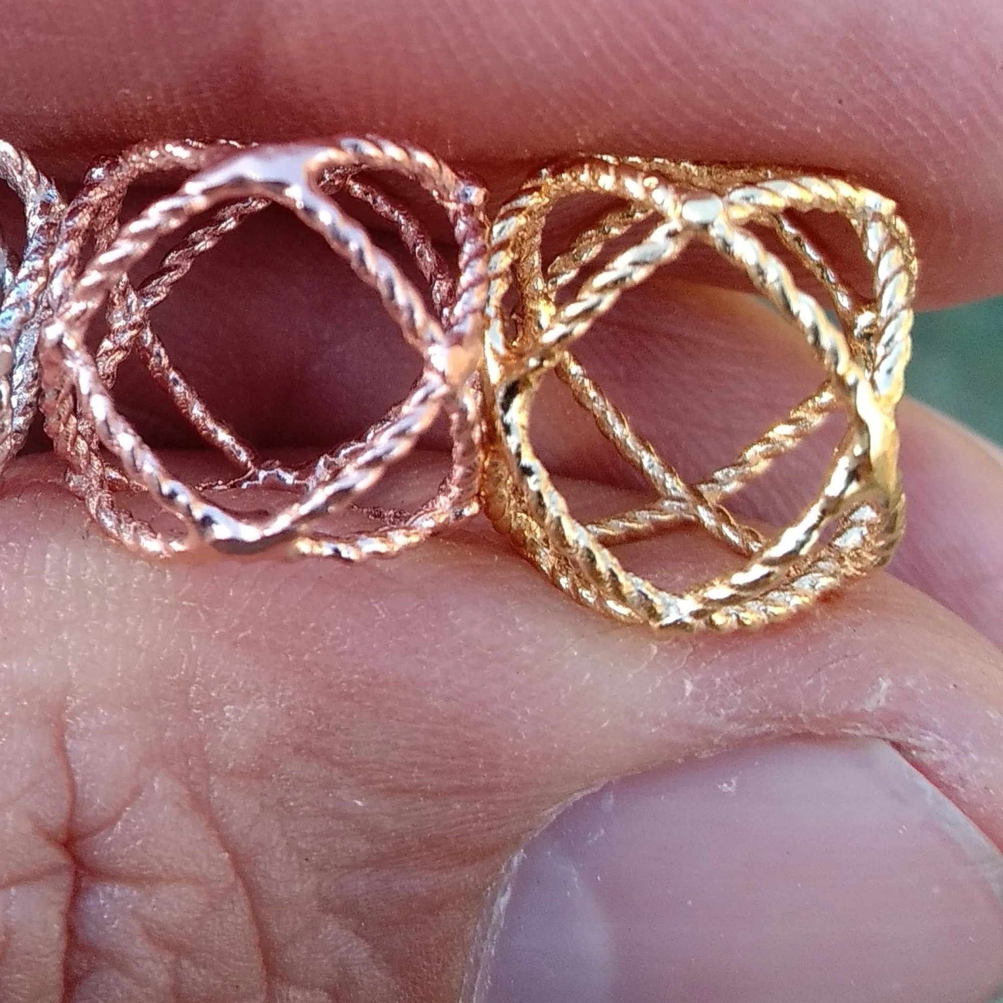 Ciondoli fatti personalmente uno ad uno in puro Argento 925 naturale, poi placcato oro e oro rosa.